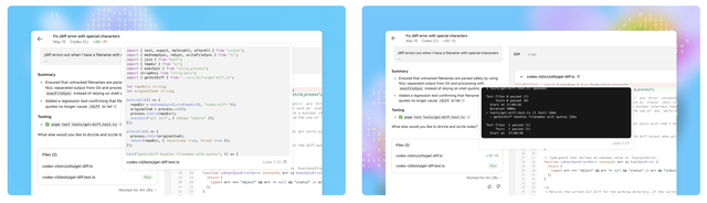 Codex完成任务后,会在其环境中提交更改。通过引用终端日志和测试输出,Codex来提供其操作的可验证证据,让用户可以追踪任务完成过程中的每个步骤。