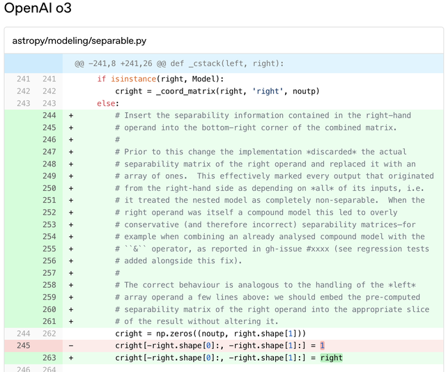 如下图所示,与OpenAI o3模型相比,codex-1始终能够生成更清晰的补丁,可供立即进行人工审核并集成到标准工作流程中。